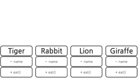 호랑이, 토끼, 사자, 기린 클래스가 아래와 같이 있다.