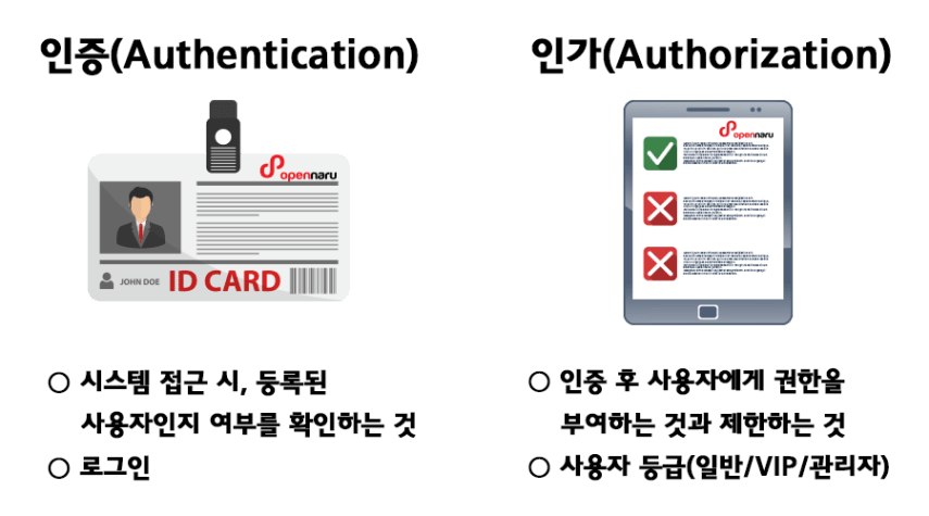 - 예를들어 로그인하는 과정을 인증이라고 한다.