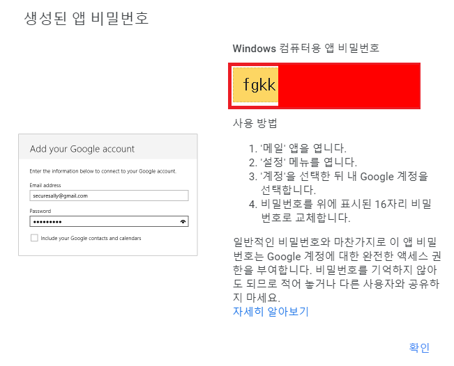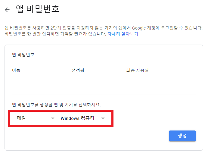 여기에 있는 windows 컴퓨터용 앱 비밀번호를 기억해두자.