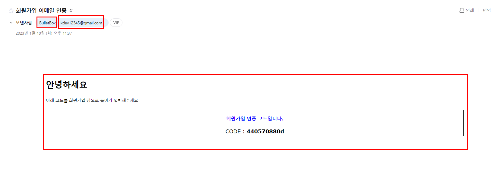 이제 인증번호도 메일로 전송을 했으니 이 인증번호를 통해 회원가입을 진행해야 한다.