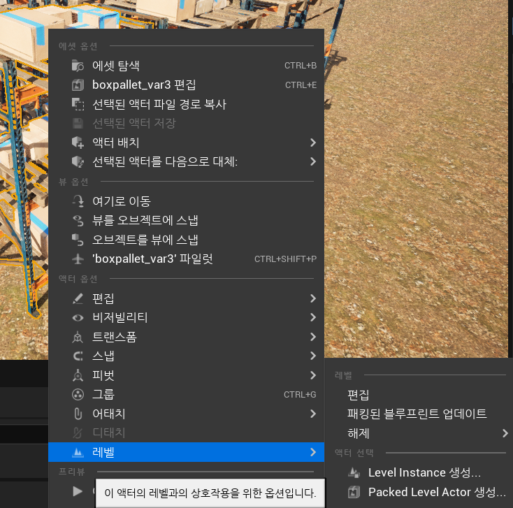 레벨 - Packed Level Actor를 통해 본인이 한 그룹화를 해서 만든 자료를